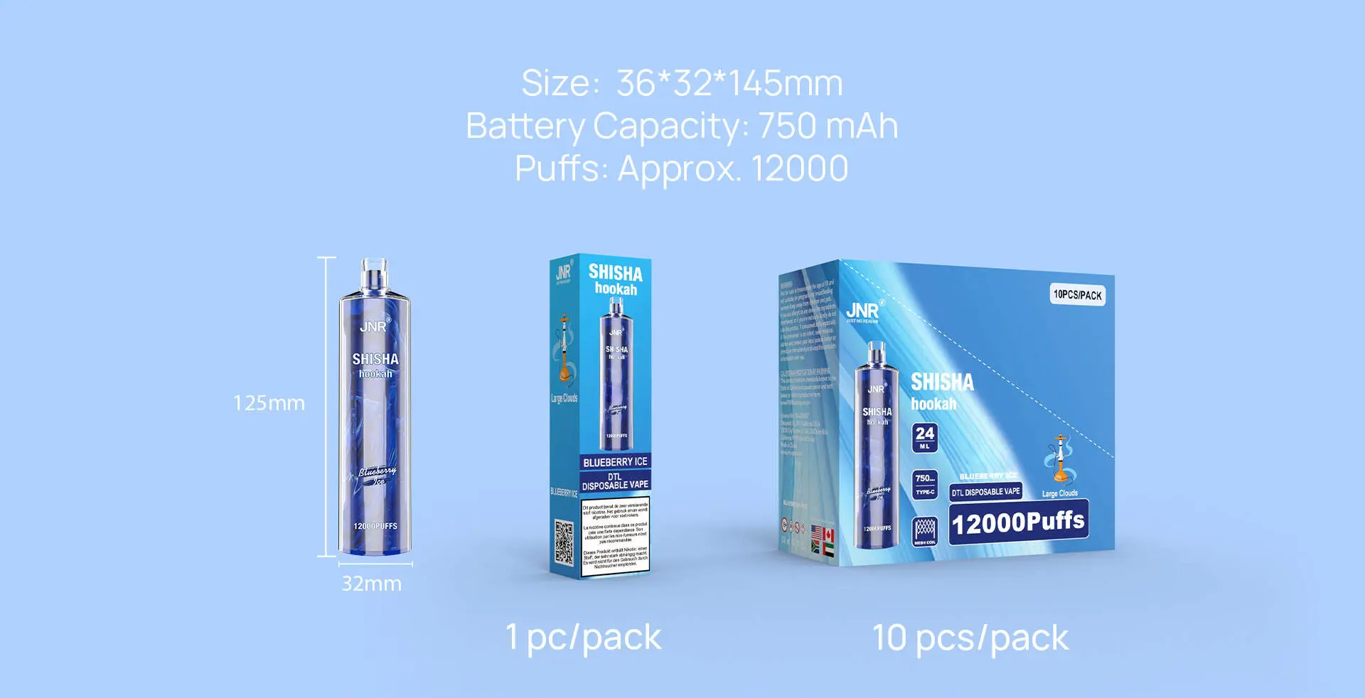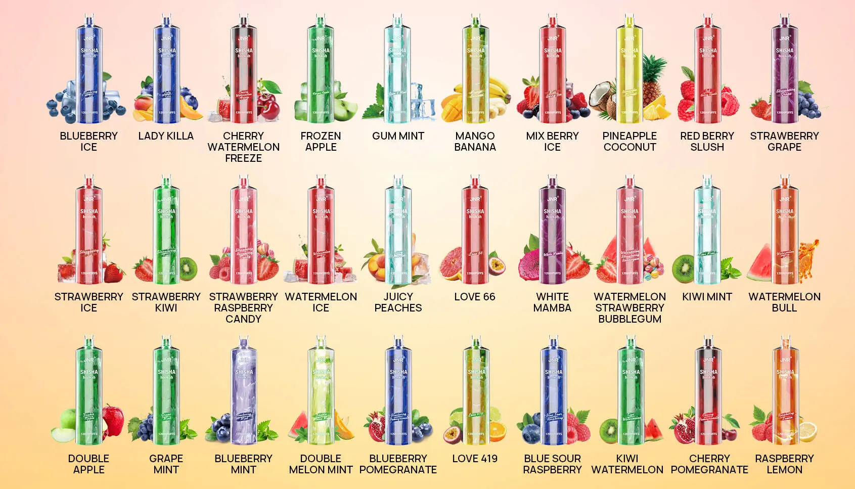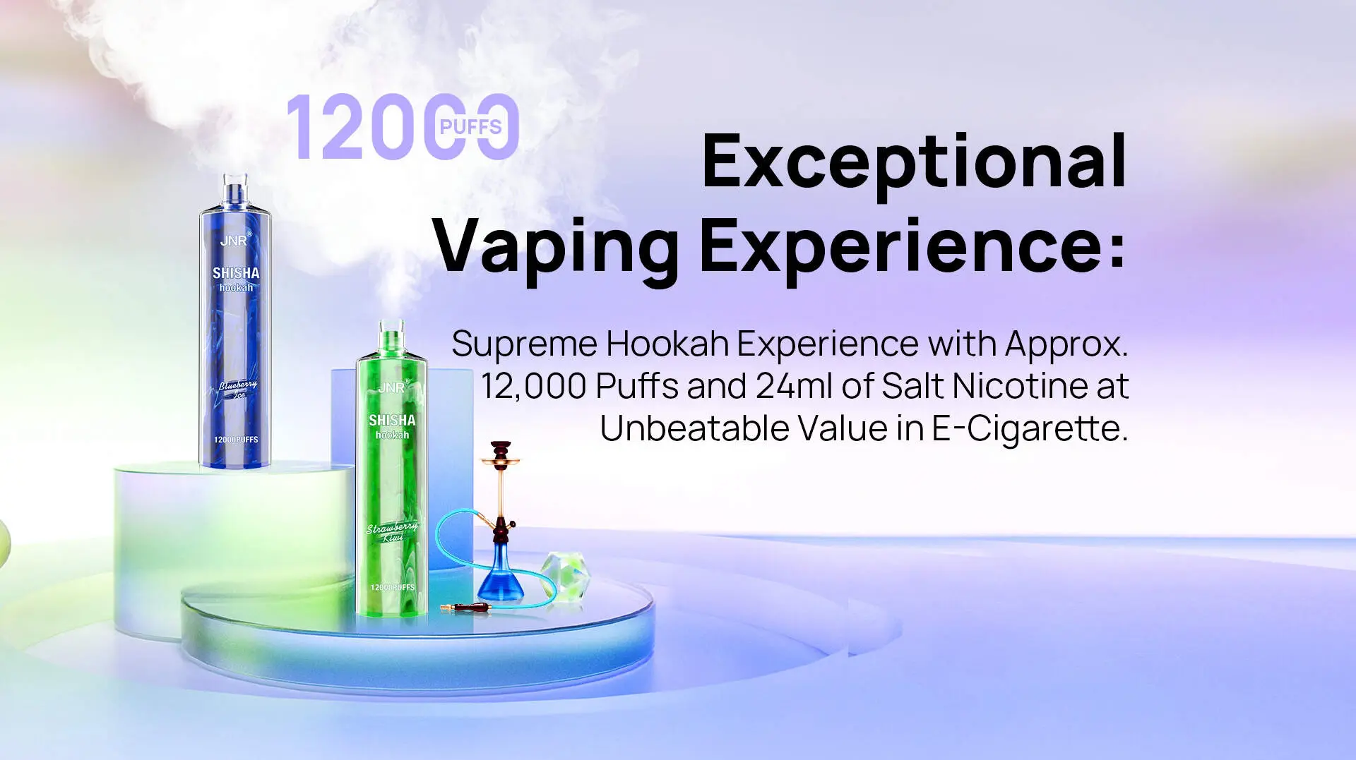 JNR(ジェイエヌアール) Shisha Hookah 使い捨て電子タバコ 12000口( 全12種類の味) 2% ニコチン